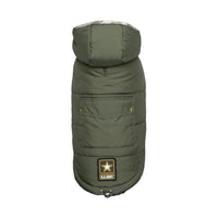 Designed in dark camo (solid army green) with striking yellow accents and the authentic US Army® logo patch, this parka delivers rugged good looks while keeping your dog protected from the elements.
