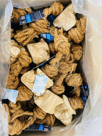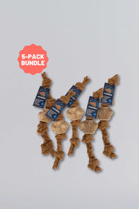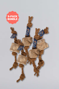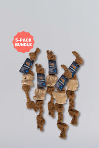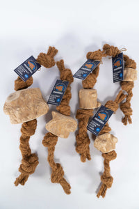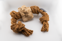 The coffee wood core is the same ultra-dense material used in our popular Mumbies Root Chews—highly resistant to cracking, splintering, and breaking down quickly, making it a safe and long-lasting alternative to traditional sticks. The braided coconut fibers add grip, enrichment, and gentle dental benefits, naturally softening as dogs chew.